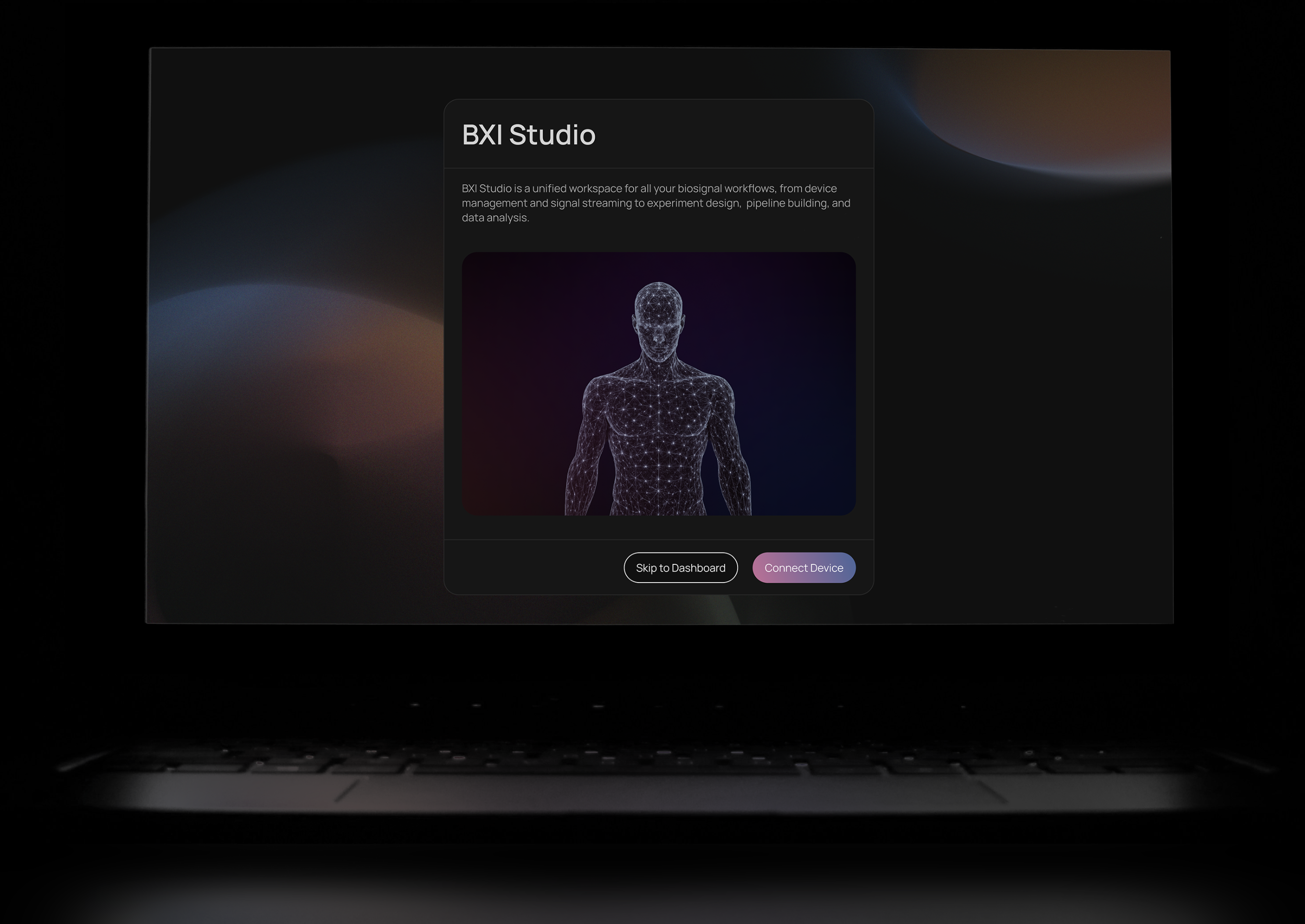 At the heart of BXI Studio is a modular design philosophy. We've organized the platform into three specialized modules—Connect & Configure, Streams, and Datasets—each focused on a specific aspect of biosignal work, yet seamlessly integrated with the others. In the following sections, we'll walk through each capability of BXI Studio in detail.